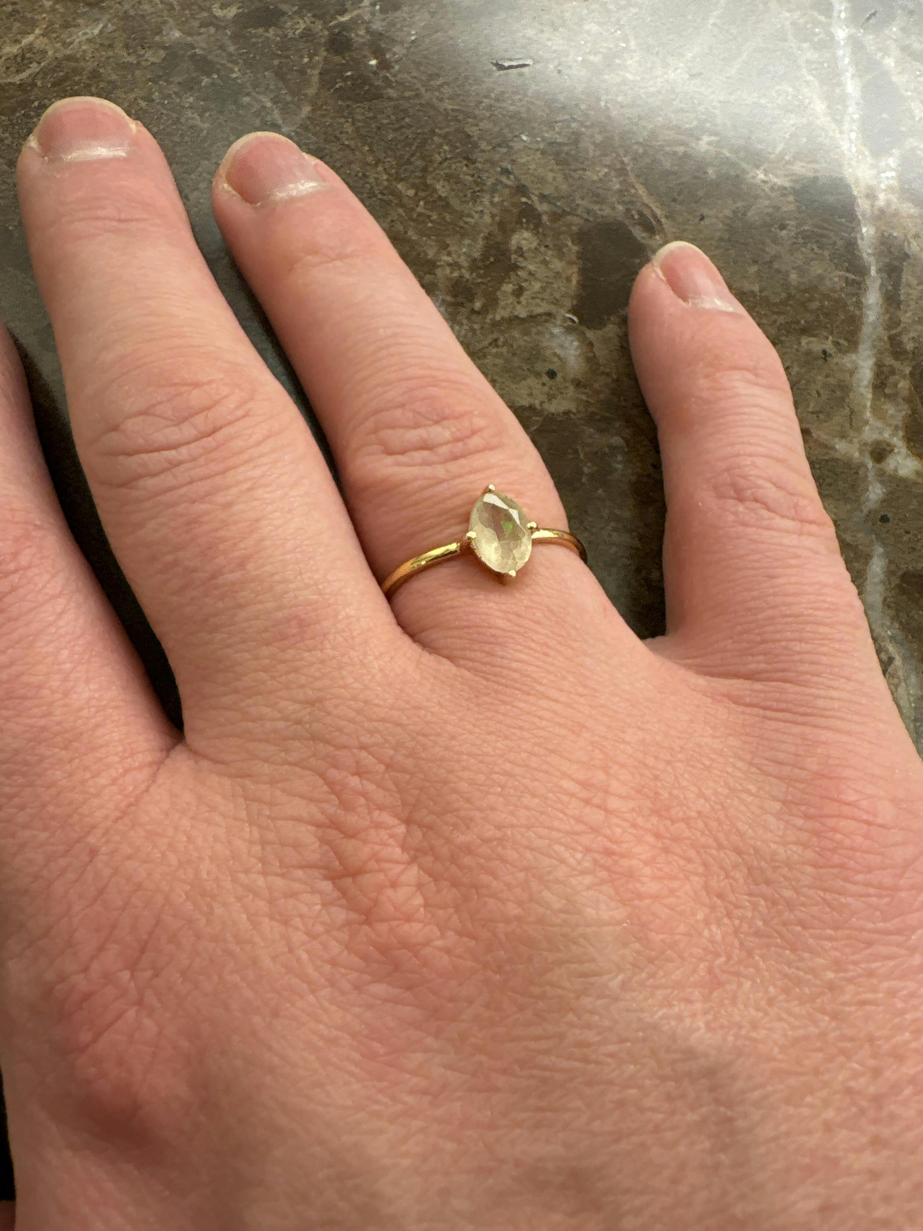 I can’t say enough about how beautiful this ring is. The opal is stunning and has a rainbow of colours every which way you turn it. Opal is VERY delicate so be aware that you will need to take extremely good care of it. On top of that, the owner goes above and beyond for her customers - don’t hesitate to buy from this shop!